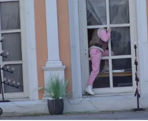 Kako je mislila da je dobra ideja da beži kroz staklo i veliki prozor u dvorištu, kroz koji je već nekoliko puta pokušavala da se provuče, ona je lupanjem i lomljenjem stakla probudila pojedine zadrugare.