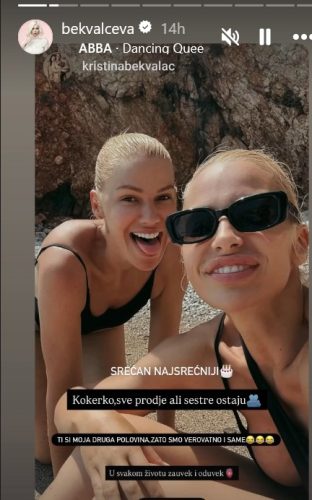 „Kokerko, sve prođe, ali sestre ostaju. Ti si moja druga polovina, zato smo verovatno i same! U svakom životu, zauvek i oduvek“, napisala je Kristina Bekvalac.