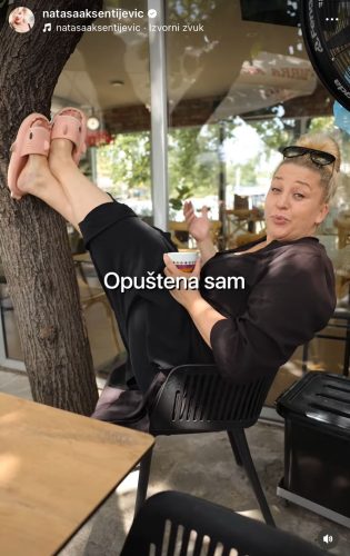Putem storija je pokazala kako se opušta od dnevnih obaveza, te se nalazila u jednom kafiću. Digla je noge na drvo, a u ruci je držala šolju kafe.
