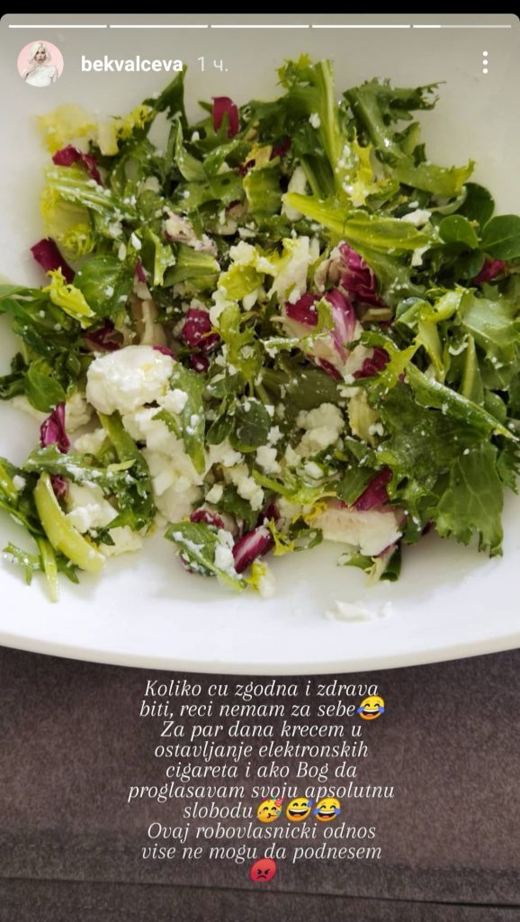 „Koliko ću zgodna i zdrava biti reči nemam za sebe. Za par dana krećem u ostavljanje elektronskih cigareta i ako Bog da proglašava svoju apsolutnu slobodu. Ovaj robovlasnički odnos više ne mogu da podnesem“, napisala je Nataša.