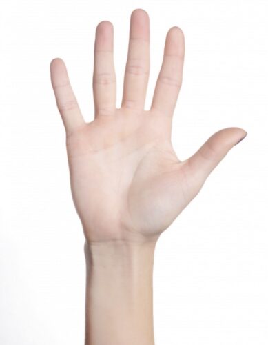 Spoljašnjost: Dlanovi su jasno kvadratni sa zdepastim, čvrsto građenim prstima i četvrtastim noktima. Koža je ružičasta, debela sa jasnim linijama. Linije na dlanu su prilično duboke.