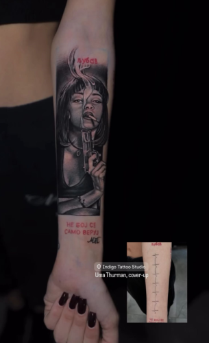Naime, Tara je ranije istetovirala Danilov lik na ruci, što je tada bio znak njihove ljubavi. Sada, nakon definitivnog raskida, odlučila je da tetovažu prepravi. I to ni manje ni više nego u lik legendarne glumice Ume Turman, u ulozi iz kultnog filma „Petparačke priče“.