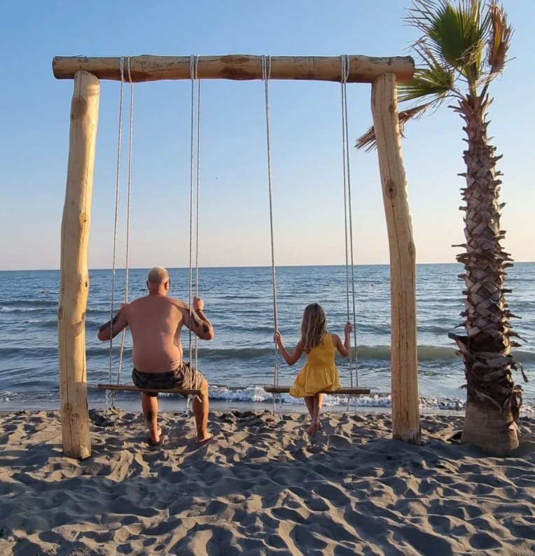 Tako je Marko na Instagramu podelio fotografiju na kojoj uživa na moru sa Krunom. Uživajući u pesku i obali mora, ljuljali su se na ljuljašci. Čini se kao da se Janjuš ofarbao u plavo.