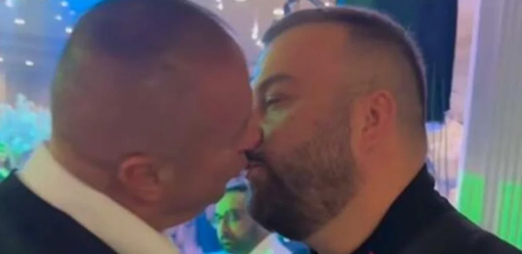 Na snimku koji se pojavio na društvenoj mreži Instagram, Đani je zabeležen kako prilazi poznatom harmonikašu Borku Radivojeviću i ljubi ga u usta.