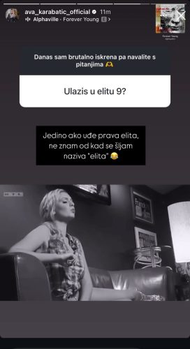 Na pitanje: „Ulaziš li u Elitu 9?“, Ava je bez zadrške dala iskren odgovor i odbrusila: