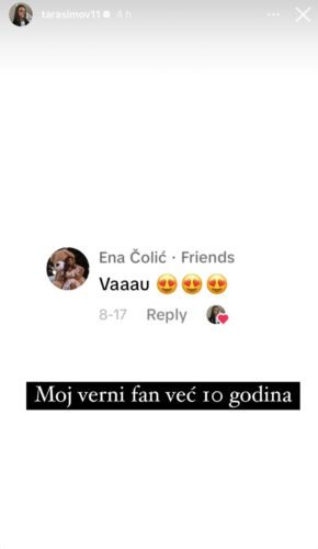 – Moj verni fan već 10 godina – stoji u opisu prve Tarine Instagram priče.