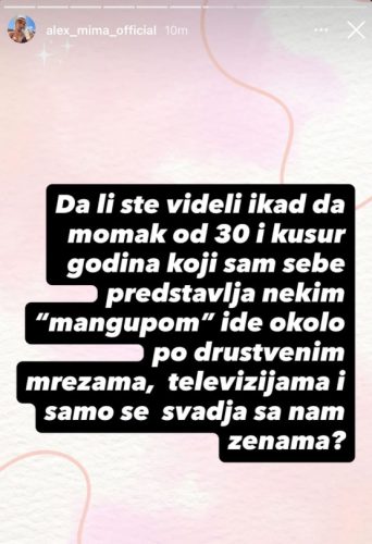 „Da li ste videli ikad da momak od 30 i kusur godina koji sam sebe predstavlja „mangupom“ ide oko po društvenim mrežama, televizijama i samo se svađa sa nama ženama?“