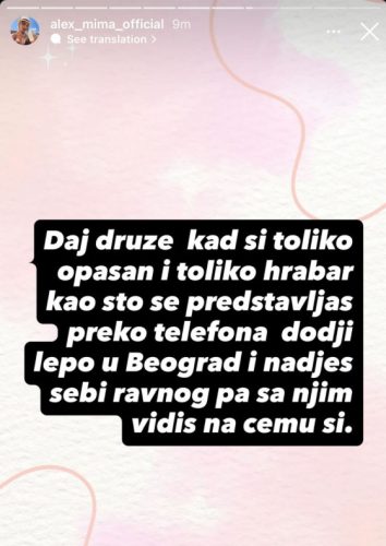 „Ovaj kvazi kriminalac stvarno misli da se njega neko plaši više? On samo zna da bije žene i familiju kući. Dođi zecu u Beograd“
