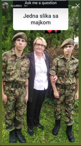 On je okačio sliku na kojoj je sa majkom Ljubom i bratom na dan kada su po svemu sudeći polagali zakletvu u vojsci.