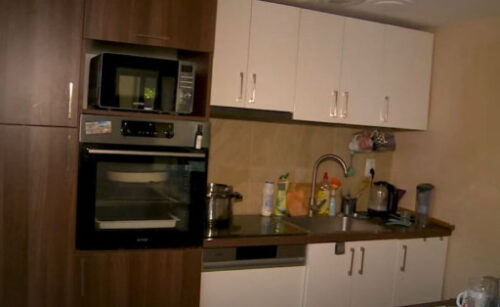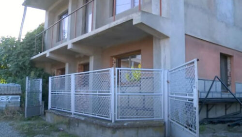 Izvan kuće je metalna ograda, a odmah pored njih su komšije. Iza kuće, kako se vidi na fotografijama, je gomila starih stvari.