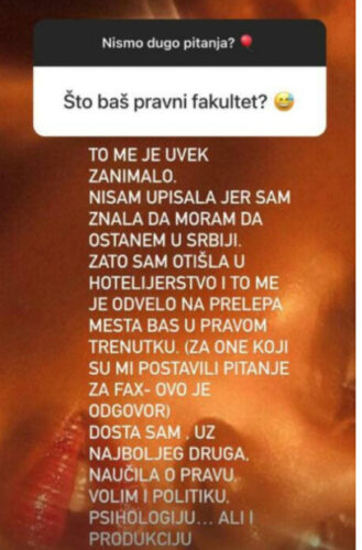 Naime, ona je odgovarala na pitanja na Instagramu i priznala koji fakultet bi upisala.