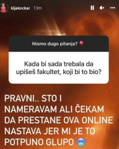 -Pravni… Što i nameravam ali čekam da prestane ova ‘online’ nastava jer mi je to potpuno glupo – rekla je Kija.