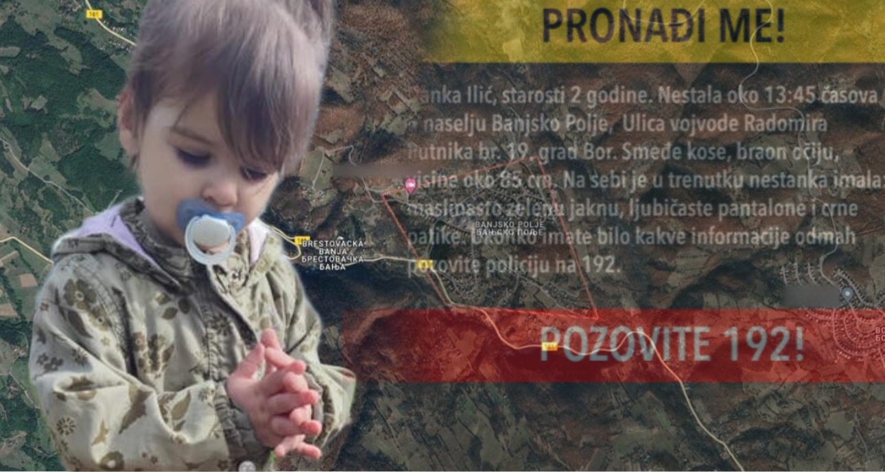 VANREDNA SITUACIJA Sistem MUP pronađime.mup.gov.rs aktiviran je zbog nestanka devojčice iz Bora. Dvogodišnja devojčica Danka nestala je kod Bora. Građani…