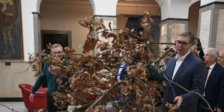 Vučić uneo Badnjak u Predsedništvo Na Badnji dan predsednik Aleksandar Vučić uneo je badnjak u zgradu Predsedništva na Andrićevom vecu.…