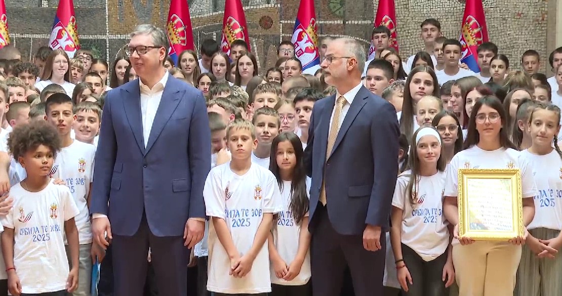 VUČIĆ POSLAO SNAŽNU PORUKU Predsednik Srbije Aleksandar Vučić primio je danas mlade srpske sportiste iz 18 zemalja, učesnike kampa "Srbija…