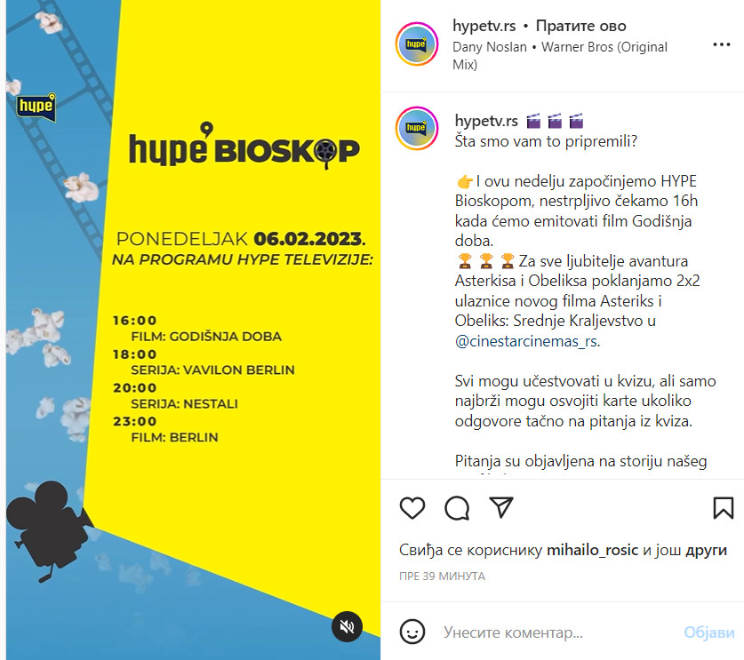 Srećan početak nove radne nedelje! Spremite se za ovonedeljni bioskop kod kuće i filmski i serijski repertoar HYPE TELEVIZIJE! I…