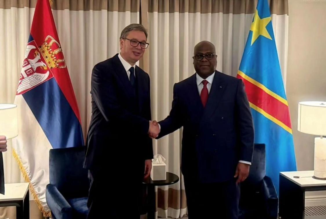 PRIJATELJSKI I OTVOREN RAZGOVOR Predsednik Republike Srbije Aleksandar Vučić sastao se sa predsednikom Demokratske Republike Kongo Feliksom Čisekedijem Čilombom tokom…
