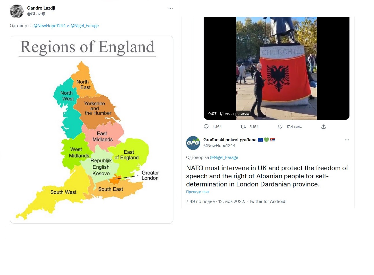 Nakon jučerašnje objave na Twitter-u britanskog političara Najdžela Faraža koji se požalio na ponašanje Albanskih migranata u Londonu, usledila je…