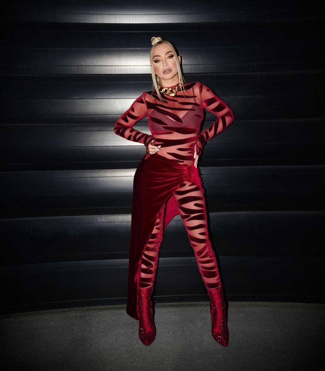 Pevačica Maya Berović baš ume da se estetski prosto istakne, da ne kažemo: totalno bez ukusa. Tigrasti kombinezon crvene boje,…