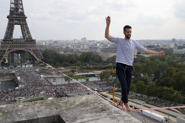 Francuz Nejtan Polin prešao je preko konopca na visini od 70 metara iznad Sene u Parizu, propraćen burnim navijanjem posmatrača…