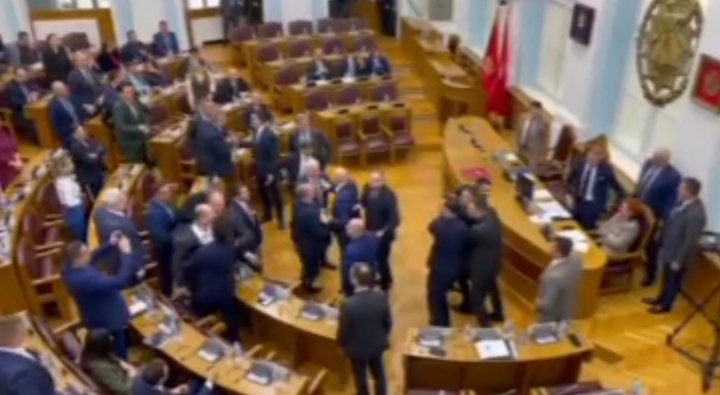 Nastavljena sednica Crnogorske skupštine na Cetinju, nakon tuče poslanika. Ispred zgrade kordon policije. Sve je počelo jutros, ispred zgrade skupštine…