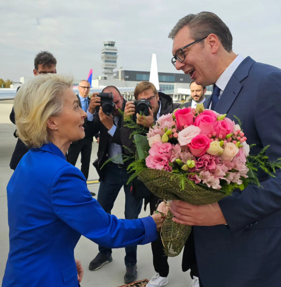 Predsednik Republike Srbije Aleksandar Vučić dočekao je predsednicu Evropske komisije Ursulu fon der Lajen na aerodromu „Nikola Tesla“ u Beogradu.…