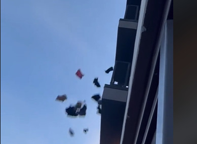 Nepoznata devojka odlučila je da iseli svog partnera iz stana nakon što je saznala da ju je prevario. Besna devojka pobacala sve njegove stvari preko balkona, od čarapa do nameštaja.