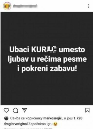 – Ubaci ku**c umesto ljubav u tekstovima pesama i započni zabavu – pisalo je u storiju jednog profila.