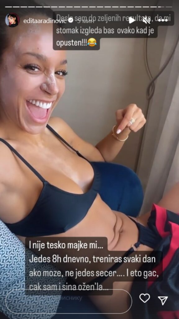 – Došla sam do željenih rezultata, da mi stomak izgleda baš ovako kad je opušten – nasmejala je sve Edita i ponovo pokazala koliko je neposredna i duhovita.
