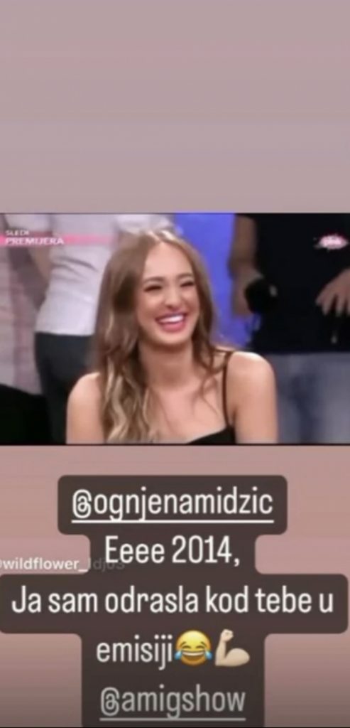 – Eee 2014., ja sam odrasla kod tebe u emisiji – označila je voditelja Ognjena i podelila fotografiju iz emisije „Amig show“.