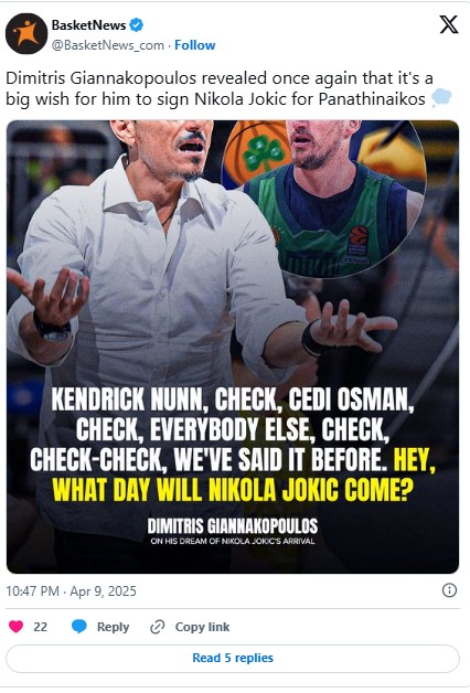 Vlasnik Panatinaikosa Dimitris Janakopulos više puta je javno isticao koliko bi voleo da vidi Nikolu Jokića u dresu prvaka Evrope!