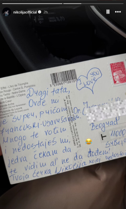 – Dragi tata, ovde mi je super, pričam francuski – usavršavam. Mnogo te volim i nedostaješ mi, jedva čekam da te vidim, ali ne da dođem! Tvoja ćerka Nikolija kojoj nedostaješ – napisala je pevačica u razglednica je bila adresirana na Srbiju, a emocije koje su stajale u tom jednostavnom, ali iskrenom tekstu, jasno su pokazivale koliko joj je otac nedostajao.