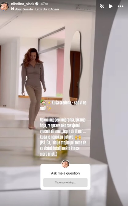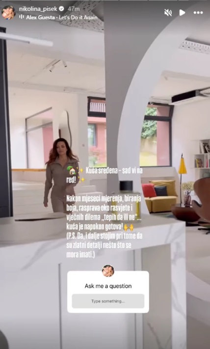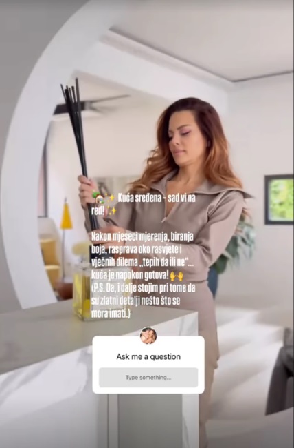 – Nakon meseci merenja, biranja boja, rasprava oko rasvete i večnih dilema „tepih, da ili ne“ kuća je napokon gotova. P.S. Da, i dalje stojim pri tome da su zlatni detalji nešto što mora da se ima – napisala je Nikolina.