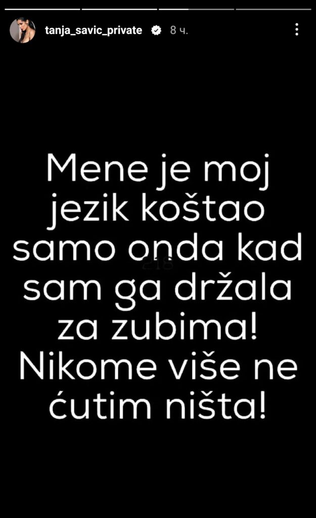– Mene je moj jezik koštao samo onda kad sam ga držala za zubima! Nikome više ništa ne ćutim – stoji u Tanjinoj objavi.