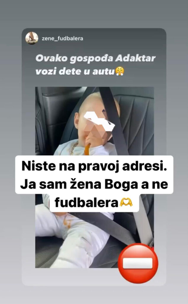 Reading: NISTE NA PRAVOJ ADRESI, JA SAM ŽENA BOGA, A NE FUDBALERA: Andžela Adaktar šokirala javnost fotografijom bebe u automobilu