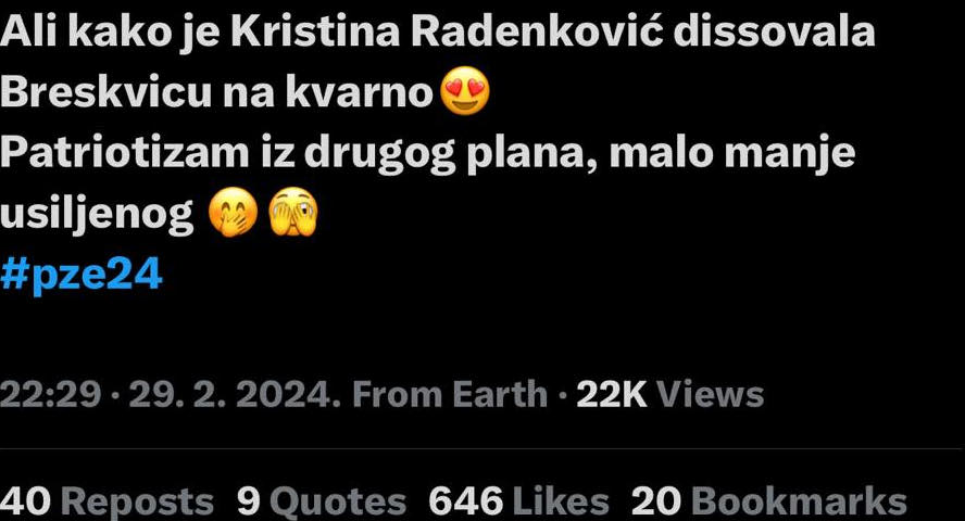 – Ali kako je voditeljka disovala Breskvicu na kvarno: „Patriotizma iz drugog plana“ – glasio je samo jedan od komentara koji se odmah proširio putem mreža.