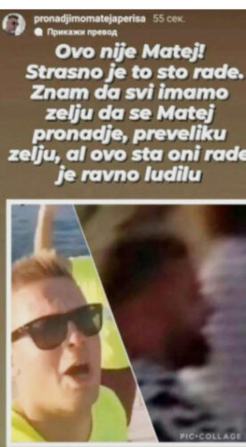 “Ovo nije Matej, strašno je to što rade. Znam da svi imamo želju da se Matej pronađe, preveliku želju, ali ovo što oni rade je ravno ludilu”.