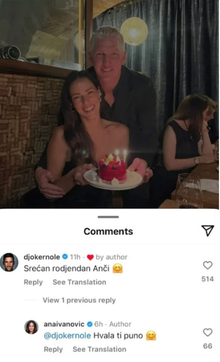 Ana se na svom profilu zahvalila svima na lepim porukama i rođendanskim željama, a njena objava privukla je brojne čestitke, među kojima se izdvaja ona od njenog prijatelja i najboljeg tenisera sveta, Novaka Đokovića.