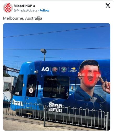 Najbolji teniser svih vremena je veoma cenjen u Melburnu, ali ga ne vole baš svi. Noletova fotografija se nalazi na jednom vozilu javnog prevoza, međutim, preko njegovog lica iscrtano je slovo U, simbol ustaštva.