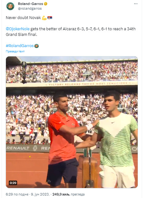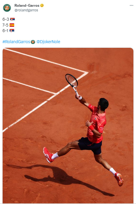 6:1 – Kraj! Novak Đoković je u finalu Rolan Garosa!