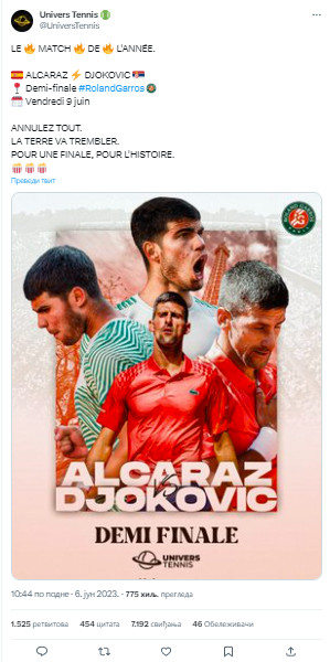 11.55 – Novak i Alkaraz su ubedljivo najviše pokazali od početka Rolan Garosa i prilično lako su došli do polufinala. Obojica su izgubili samo po set.