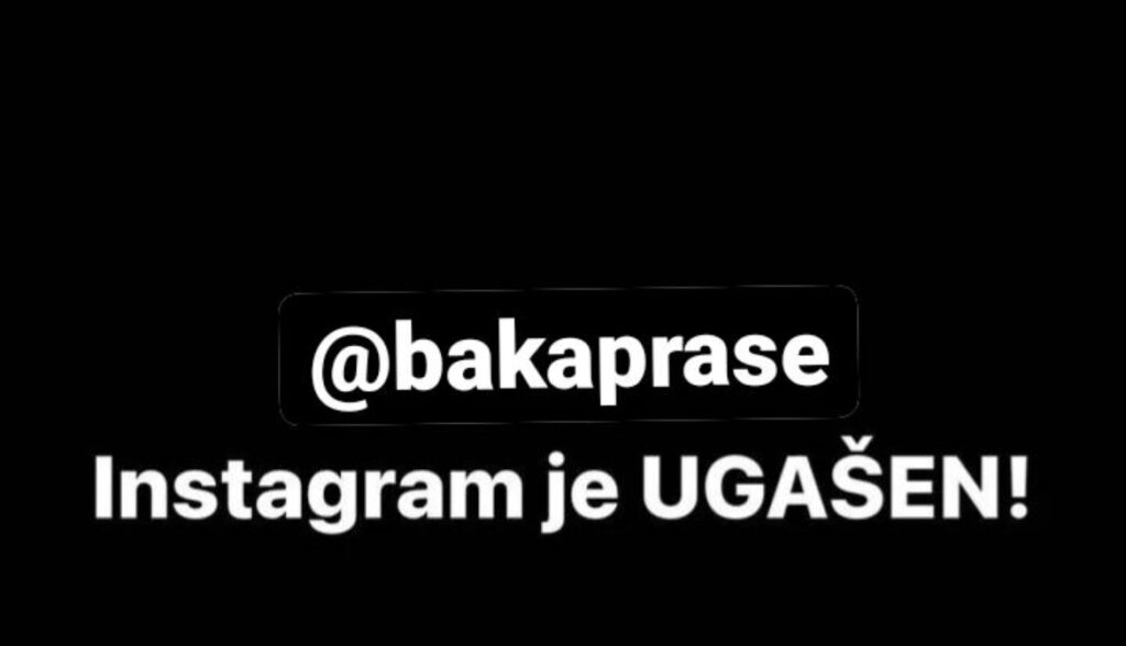 – Baka Prase Instagram je ugašen – stoji na storiju jednog od njegovih rezervnih profila.