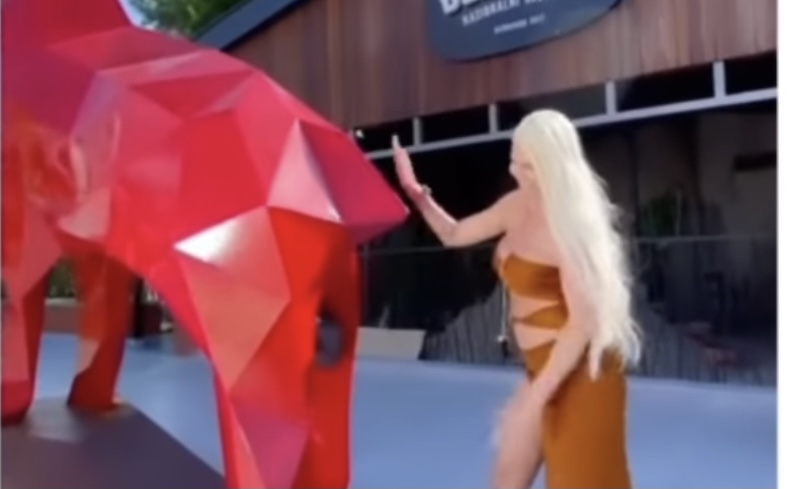 Novi provokativni video: JK pomazila statuu jarca po bezobraznom mestu! „Za dobru sreću“! (VIDEO)