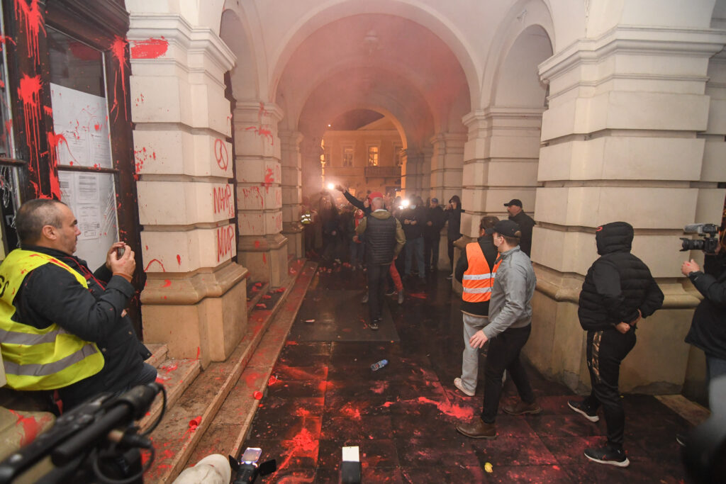 Kako navode, u večernjim satima 5. novembra tokom protesta došlo je do devastacije zgrade Gradske kuće u Novom Sadu. Pri čemu je zgradi naneta velika materijalna šteta.