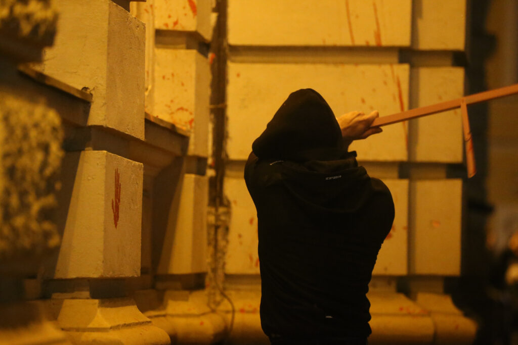 Demolirana Gradska kuća! Huligani napadali policiju, polomljena stakla, zgrada izmazana crvenom bojom