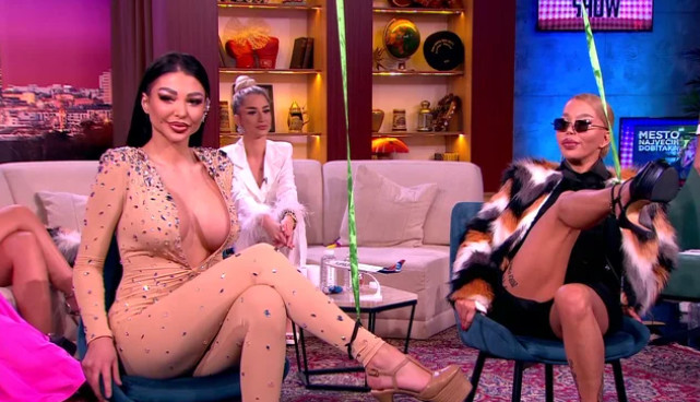 Maja i Žana sele su prve u stolice, te su počele da se bore sa kolačićem. Marinkovićevoj se u jednom momentu desio peh sa kombinezonom, te su joj ispale grudi.