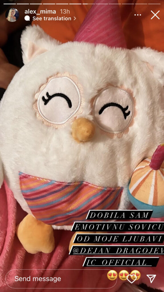 Dejan je Aleks iznenadio sa plišanom igračkom, a ona nije krila koliko je srećna.