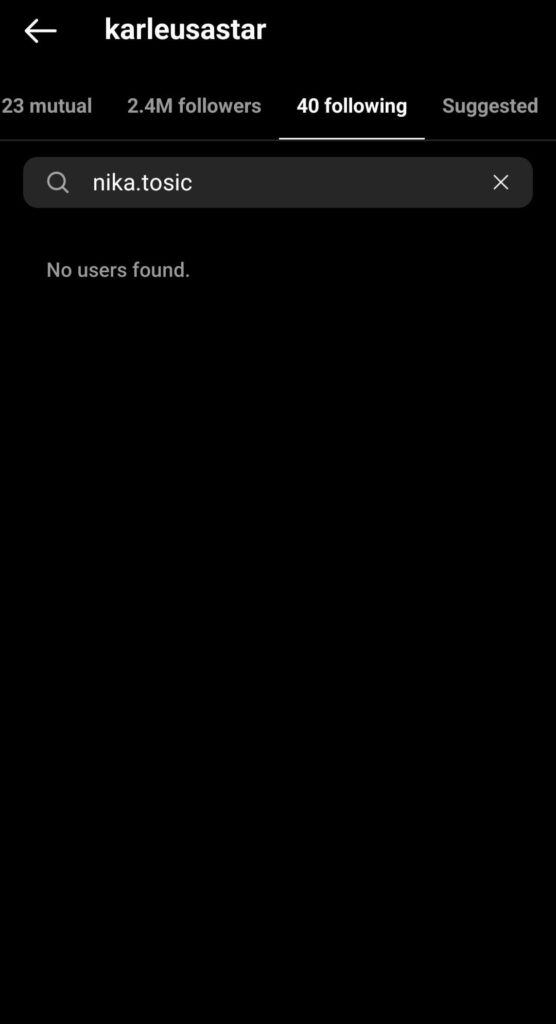 Profil mlađe ćerke popularne pevačice, Nike Tošič, prate njen otac Duško Tošić, menadžer Jelene Karleuše, Zoran Birtašević, kao i brojni drugi prijatelji porodice Karleuša – Tošić.