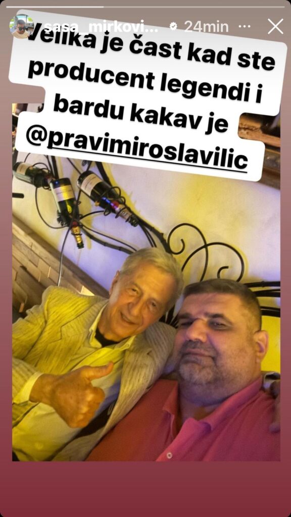 – Velika je čast kad ste producent legendi i bardu kakav je Miroslav Ilić – napisao je pevačev menadžer i producent Saša Mirković nas vom instagram profilu. On je uz podelio i njihovu zajedničku sliku.