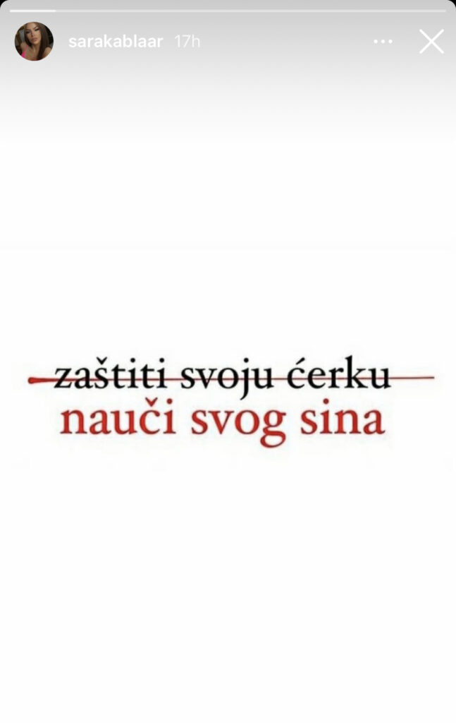Sada je imala i jasnu poruku za svoje pratioce, na kojoj jasno piše ,,NAUČI SVOG SINA umesto ZAŠTITI SVOJU ĆERKU“.
